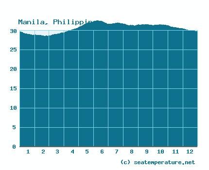 Характерными являются показатели изменения значений температуры воды в течение года. Для двух наиболее популярных для купания населенных пунктах на Филиппинах годовые графики имеют такой вид: