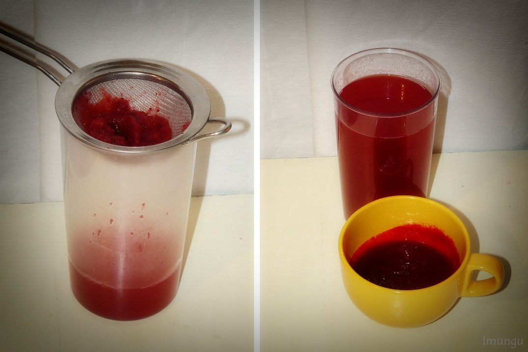 Тушить еще 5 минут, процедить, как прежде, зарезервировать сок и снова добавить мякоть. Добавьте еще литр воды, продолжайте варить на медленном огне в течение 5 минут и последний раз процедите через марлю.