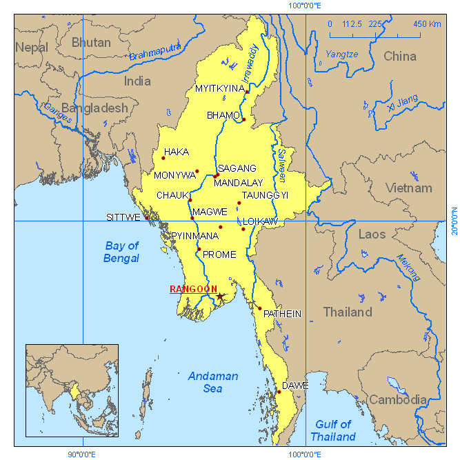 Соседние страны – Лаос, Китай, Таиланд, Индия и Бангладеш. Морское побережье – Бенгальский залив и Андаманское море.