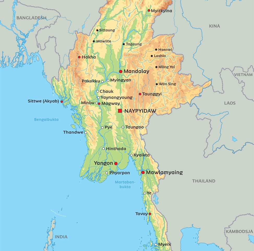 Соседние страны – Лаос, Китай, Таиланд, Индия и Бангладеш. Морское побережье – Бенгальский залив и Андаманское море.