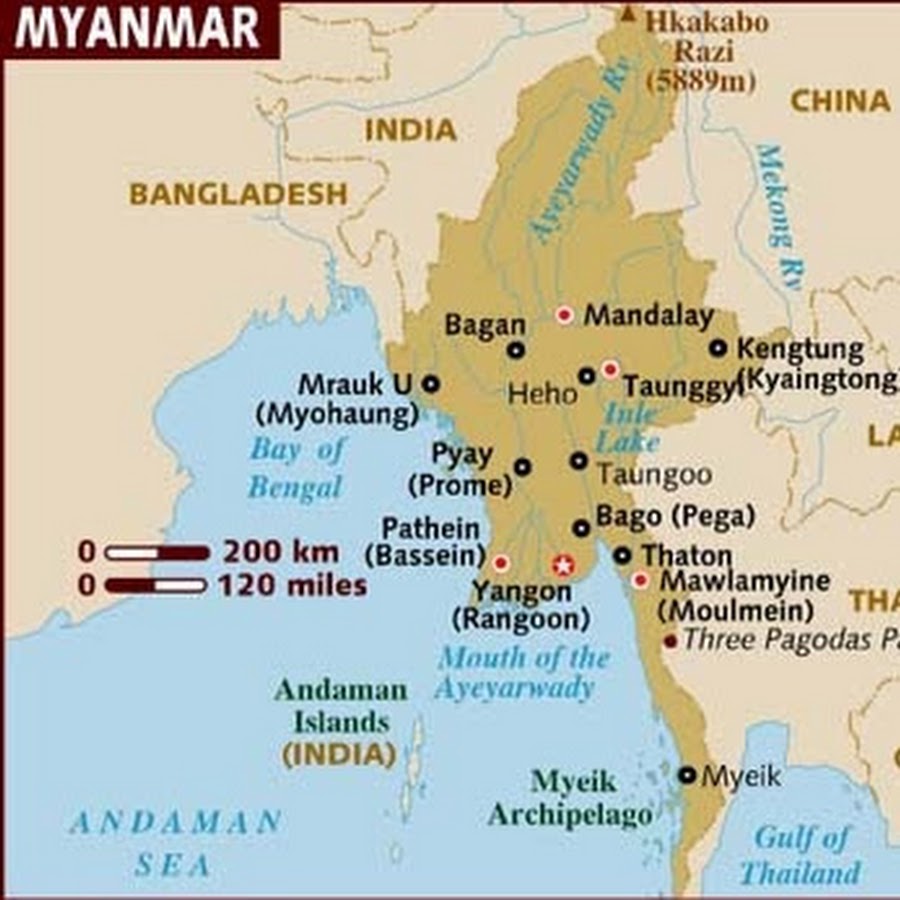 Мьянма (Бирма) – государство, которое расположено в Юго-Восточной Азии на полуострове Индокитай, а также на прилегающей материковой территории. Бирма включает в себя также ряд островных государств. Столица государства Бирма — город Рангун. Вторым по величине городом Бирмы является Мандалай. Бирма занимает площадь в 677 кв. км. На юге и юго-западе ее омывают воды Бенгальского залива, а также Андаманского моря.