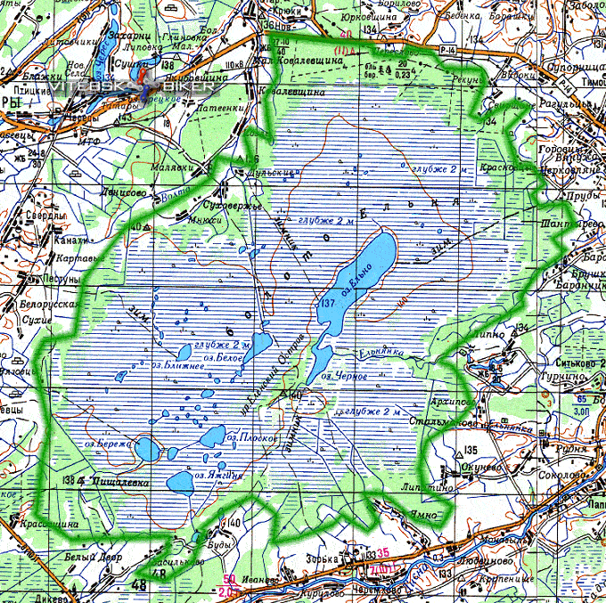 — «Еленский остров»: от деревни Кушняры, через озеро Ельня и Черное, 16 км, с расчетом на 1,5 суток похода;