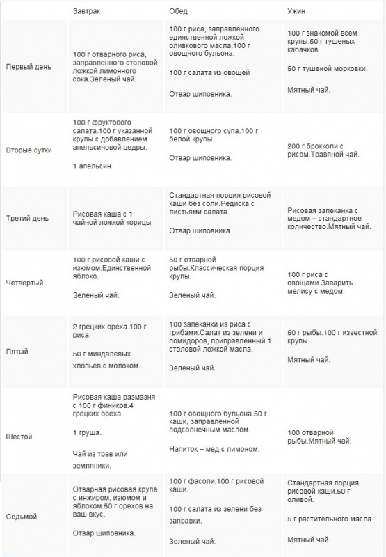 Описание рисовой диеты.