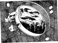 — Уважаемые зрители! — сказал он. — Дамы и господа! С вами говорит доктор Шприц. Вы слышите глухие удары: тук! тук! тук! Это бьется сердце космонавта, прибывшего на нашу планету. Внимание, внимание! Говорит доктор Шприц. Мой адрес: Холерная улица, дом пятнадцать. Прием больных ежедневно с девяти утра до шести вечера.