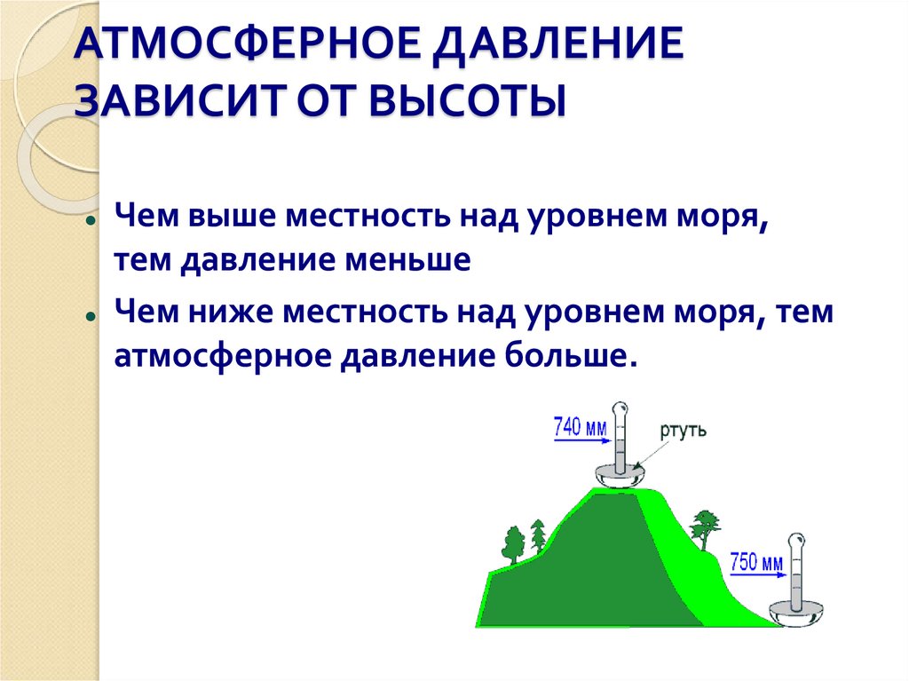 Проще говоря, атмосферное давление на вершине высокой горы ниже, чем атмосферное давление на уровне моря.