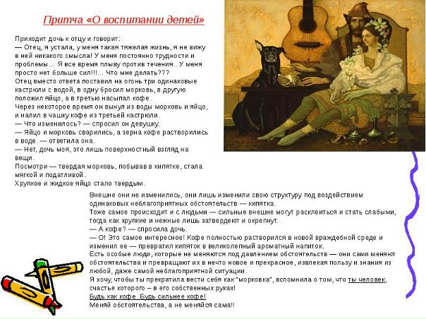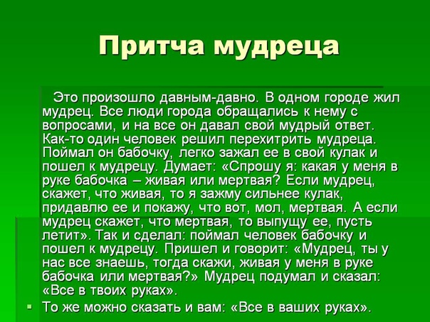 Четверо учеников дзэн, и близких друзей, обещали друг другу хранить молчание с целью углубления медитации. Первый день молчали. Их медитация началась благоприятно, но когда пришла ночь и керосиновые л…