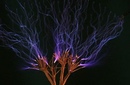 Комментарии Collura: «Это временная экспозиция вспышки искры от небольшого провода, прикрепленного к верхней нагрузке моей катушки Тесла на полной мощности.Выдержка составляет от 5 до 10 секунд (Canon Rebel 2000, Fuji 400, f 5.6, выдержка от руки). Диаметр коронного разряда составляет 5 дюймов [13 см]. Электрический потенциал составлял 150 000–200 000 вольт. Кончик провода показывает, как энергия катушки Тесла излучается в воздух из-за задействованных радиочастот».
