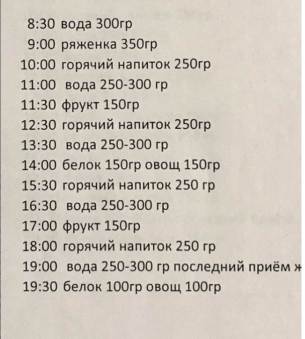 А когда пропускаю тренировки, ограничиваю этот объем до 900. Важно питаться понемногу и часто, сбалансированно по калориям и питательным веществам».