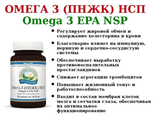 Омега-3 – группа ненасыщенных жирных кислот, оказывающих многостороннее положительное действие на организм человека. Попадая в организм человека с пищей (человек не способен вырабатывать Омега-3) , жирные кислоты Омега-3 внедряются в клетки организма. Они не просто влияют на их структуру, но еще и активизируют. Результатом такой деятельности становится улучшение работы сердечно-сосудистой системы, отсюда снижение риска сердечных приступов, инфарктов.