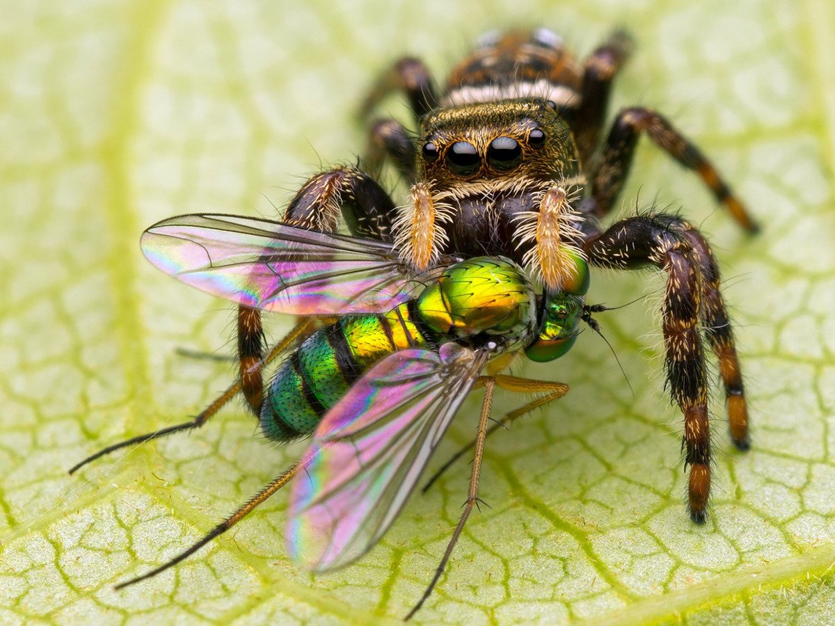 Свой ум паук демонстрирует в ходе охоты: он выбирает оптимальный вариант нападения на жертву: может просто прыгнут на нее, может спуститься сверху на паутинке. А может сделать вид, что попался в чужую паутину — и, когда потенциальная жертва заинтересуется им, внезапно прыгнуть.