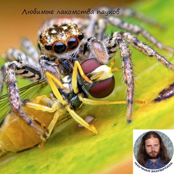 Все знают, что пауки – хищники, питающиеся насекомыми и вообще мелкими членистоногими. Некоторые, вроде охотника каёмчатого (Dolomedes fimbriatus), который живёт рядом с медленными реками и стоячими водоёмами, охотятся ещё и на головастиков, небольших лягушек и мелкую рыбёшку. Пресловутые птицееды птиц хотя и не едят, но грызуном закусить вполне могут, а австралийские пауки-золотопряды Nephila edulis строят настолько большие и прочные ловчие сети, что в них могут запутаться даже небольшие птицы и древесные змеи.