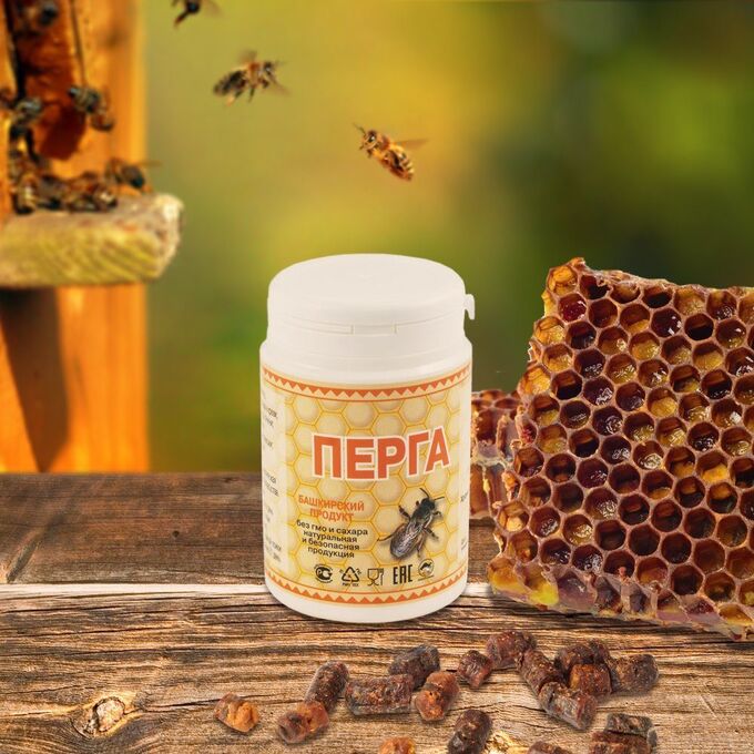 Перга – пыльца, собранная пчелами, хранящаяся в ячейках сот и предназначенная для использования в качестве белкового корма пчелиной семьи.Внутри улья Пыльца, спрессованная в ячейках сот, подвергается процессам брожения, в результате которых Пыльца превращается в Пергу. Это смесь меда и пыльцы, которая содержит много секрета, вырабатываемого железами пчелиного организма. Благодаря им в хлебе происходят процессы брожения, в результате которых изменяются соотношения его компонентов и образуются новые вещества.