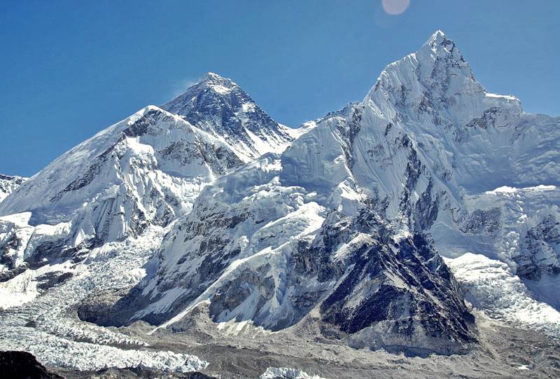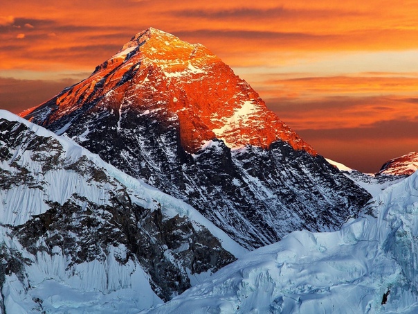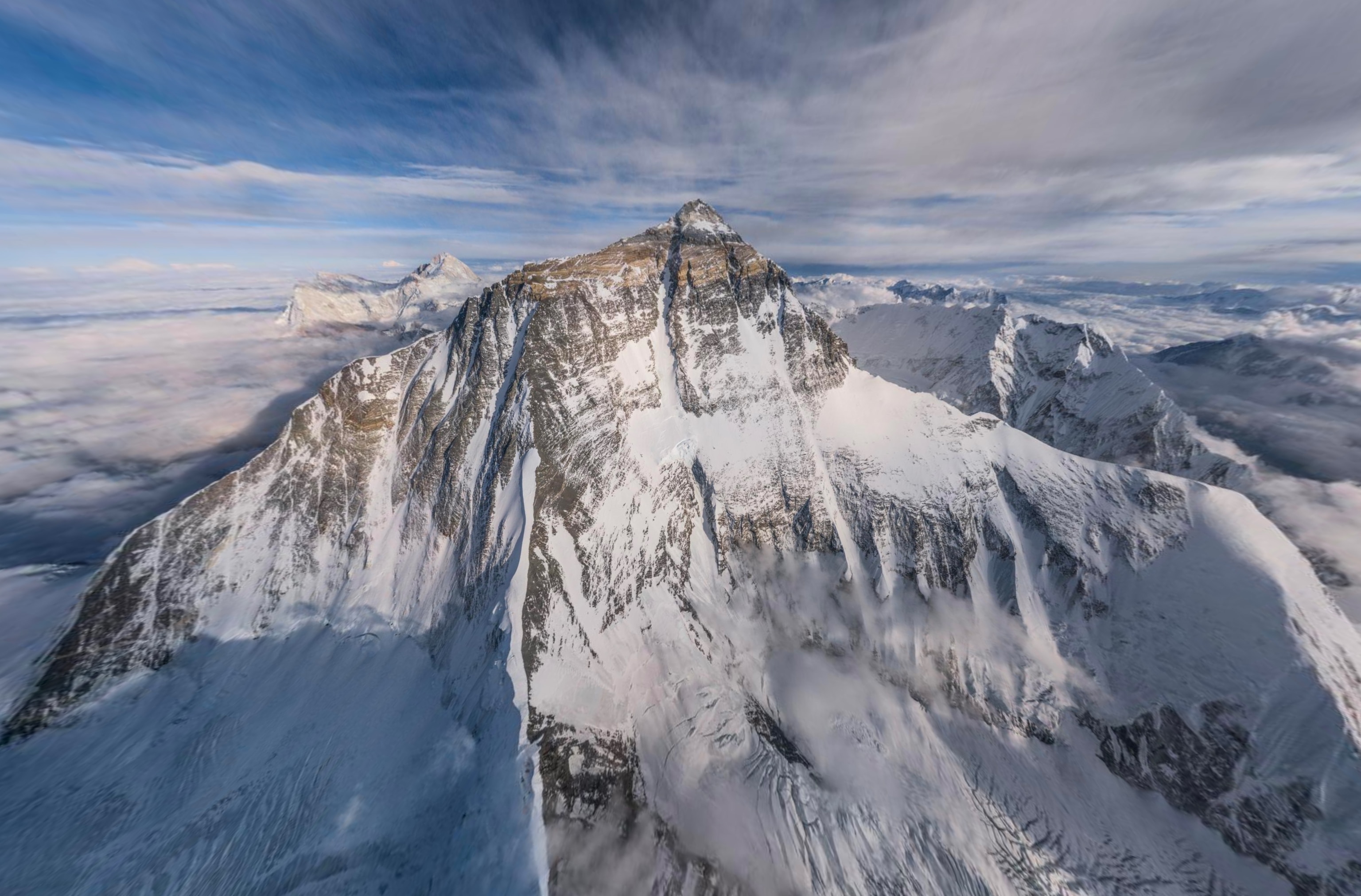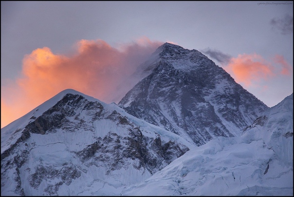 Подпись к фото,Вершина Эвереста возвышается над уровнем моря на 8848м