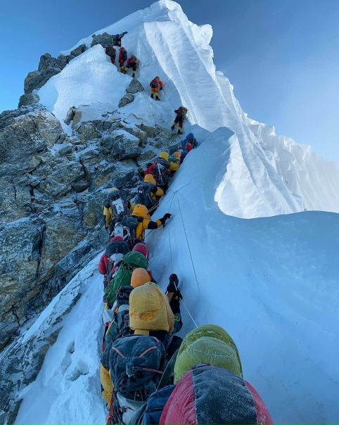 Это вызвало длинные очереди и заторы на наиболее трудных для подъема участках маршрута, из-за чего люди подвергались воздействию смертельно опасных атмосферных условий дольше, чем планировали.