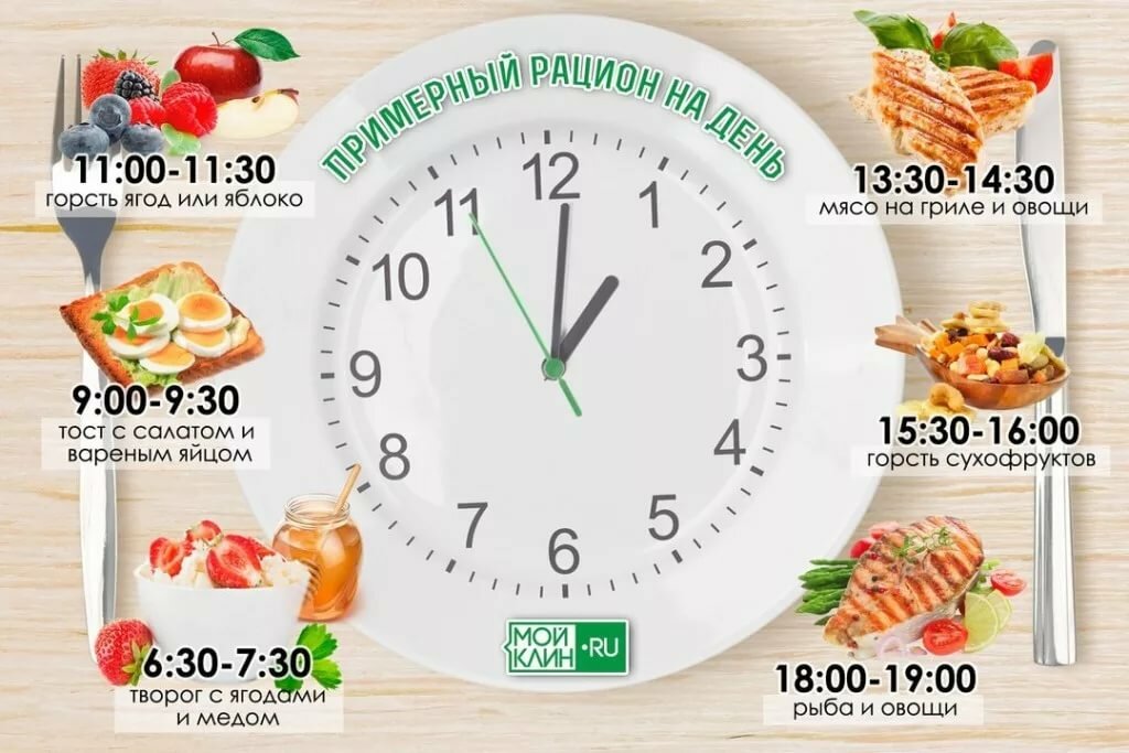Диетологи рекомендуют есть ежедневно в одно и то же время, поэтому при составлении рациона следует четко продумать свой график с учетом занятости на работе.