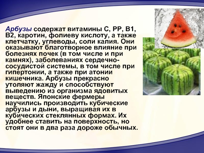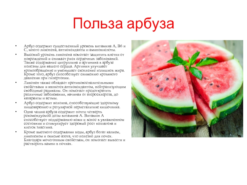 - Арбуз — источник витаминов: