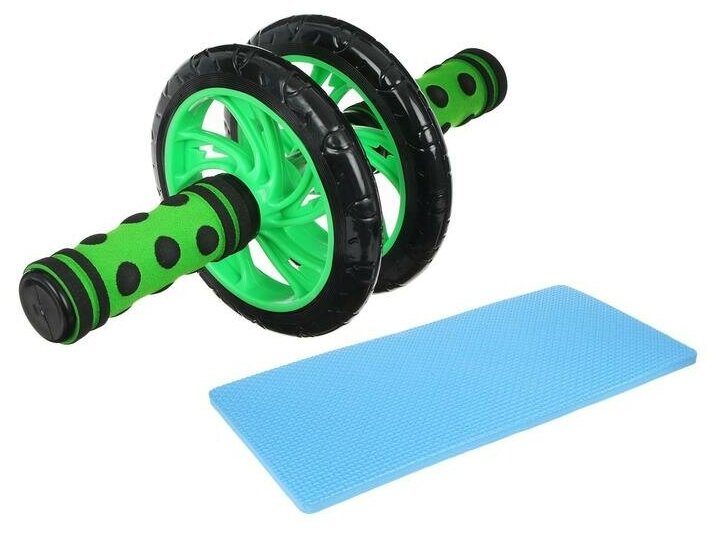 чтобы подтянуть и развить ваш пресс и мышцы кора. Двойной ролик хорошо подойдет для начинающих спортсменов, так как за счет 2-х колес имеет более устойчивую структуру. Конструкция ролика достаточно крепкая и качественно выполнена, для удобства хвата ролик имеет мягкие не скользкие рукоятки. Ролик для тренировки мышц пресса представлен в нескольких вартантах цвета, что дает возможность подобрать оптимаьный цвет для Вас. Специальный коврик под колени обеспечивает удобство выполнения тренировки.