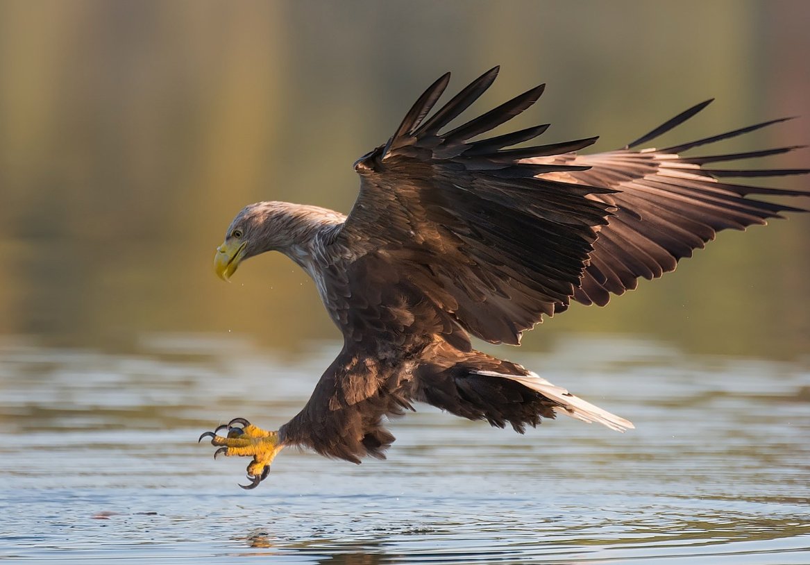 Орлан-белохвост выделяется своей необычной окраской. На фоне коричневого оперения можно заметить желтоватые пятна на голове и шее, а хвост окрашен белым цветом. Довольно крупный представитель семейства ястребиных, предпочитающий рыбную диету.