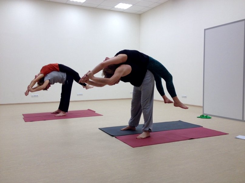 Можно заручиться поддержкой партнёра (супруга, друга, ребенка) и заняться выполнением парных поз для йоги.