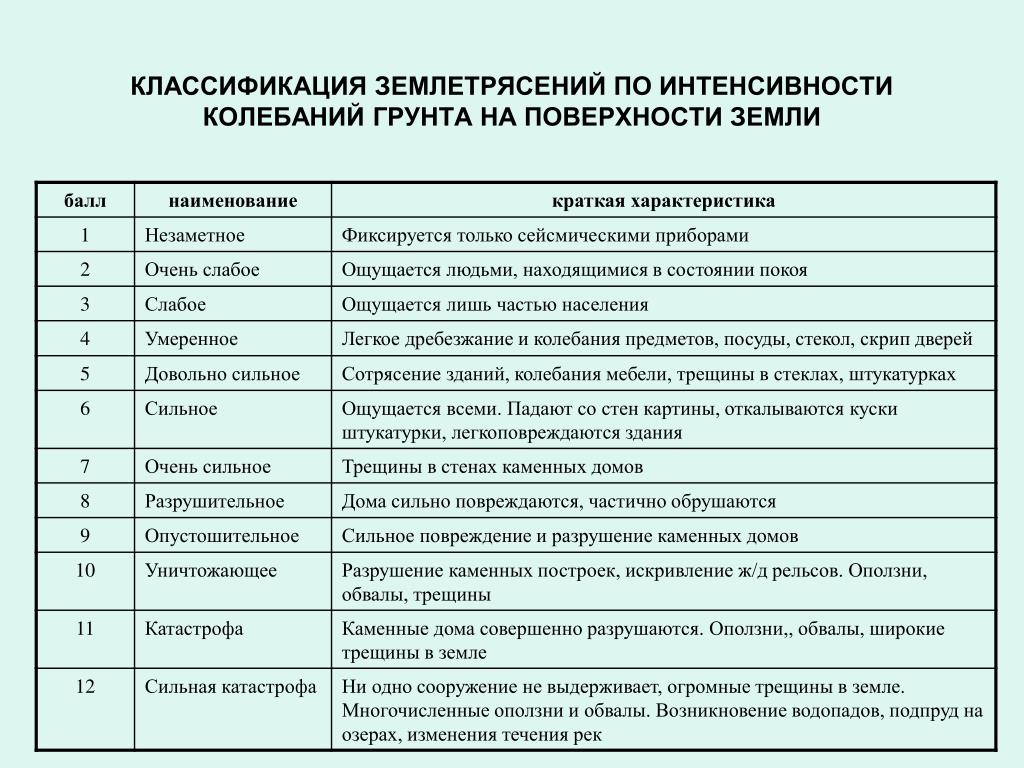 В ней все возможные землетрясения разбиты на 12 групп по нарастающей силе их проявления.