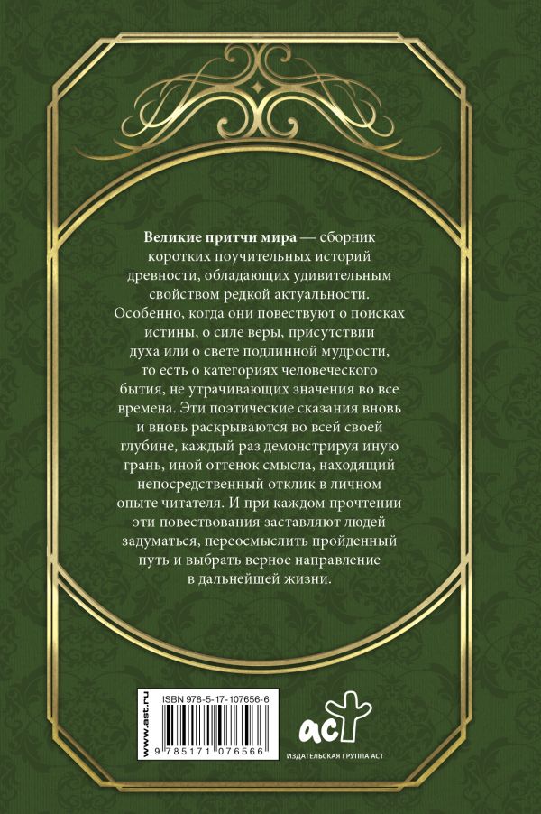 Вечер, проведённый с книгой притч, снимет напряжение прошедшего дня, наполнит душу светом и какой-то непередаваемой верой в прекрасное, поможет самому стать терпимее к окружающим и понять то, что до этого момента было скрыто. - Притчи должны стать настольной книгой любого родителя – эти мини-рассказы смогут объяснить то, что не под силу преподнести своими словами. Как объяснить, что такое Бог? Как донести до ребёнка, что ранить словом можно больнее, чем делом, а помощь ближнему должна быть в порядке вещей? Только с помощью мудрых притч!