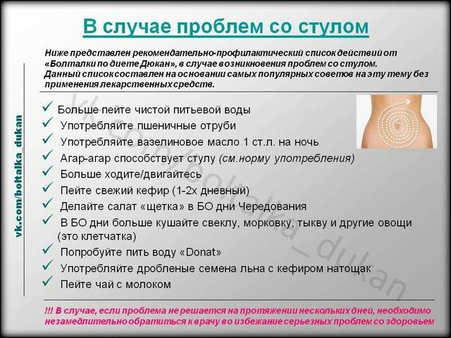 Безусловно, есть некоторые побочные эффекты, которые, впрочем, возникают не у всех. Это запоры (все дело в клетчатке), рост уровня холестерина, нагрузка на почки, печень и сосуды. Исходя из этого, консультация с врачом – обязательное мероприятие, которое должно предшествовать началу диеты Дюкана.