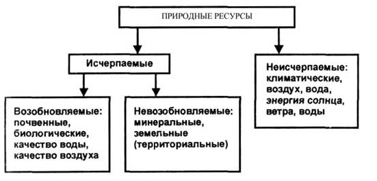 К первым относятся полезные ископаемые (нефть, уголь, руды различных металлов, другие минеральные ресурсы), ресурсы биосферы (урожай сельскохозяйственных культур, лесные ресурсы, рыбные, другие растительные и животные ресурсы), почвы, вода, воздух и пр.