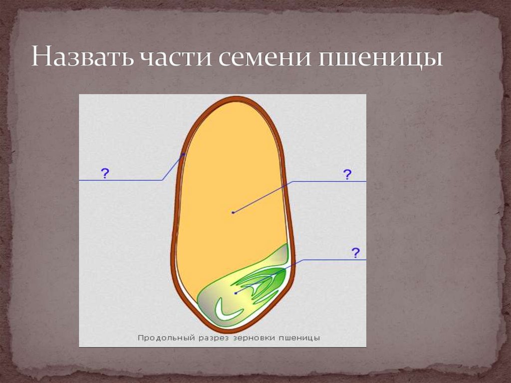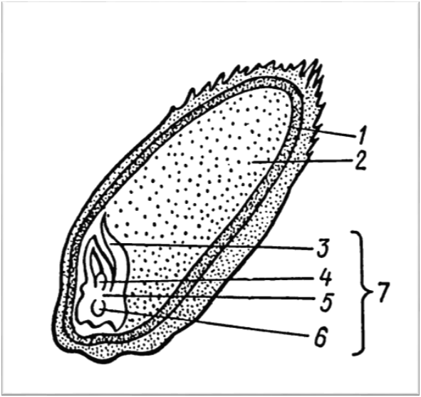 4. Зарисуйте зерновку пшеницы и подпишите названия её частей.