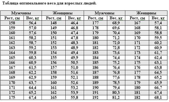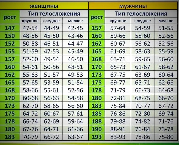 Нормативы веса и роста у взрослых. Расчет идеального веса с учетом телосложения