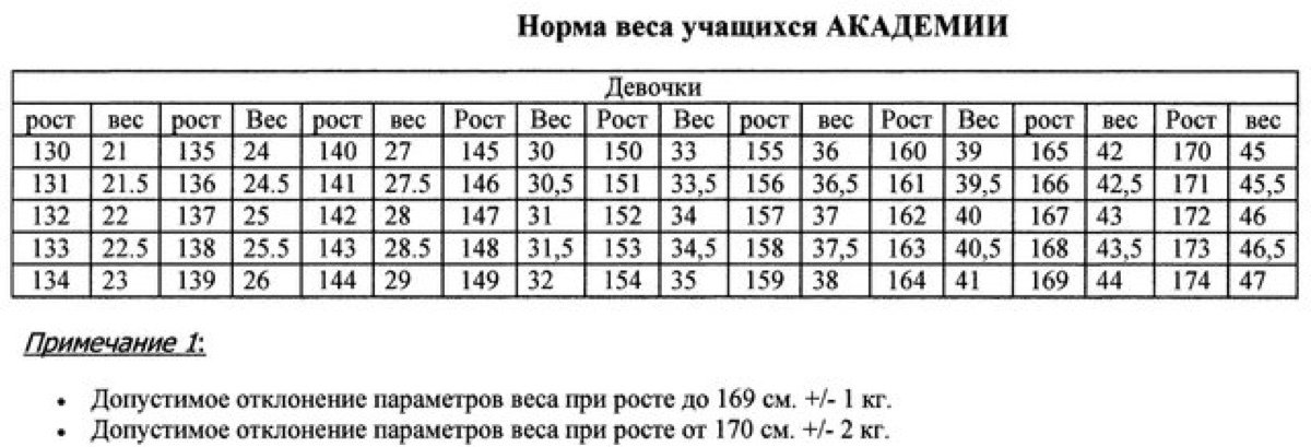| 16—18,5 | Недостаточная (дефицит) масса тела |