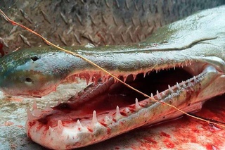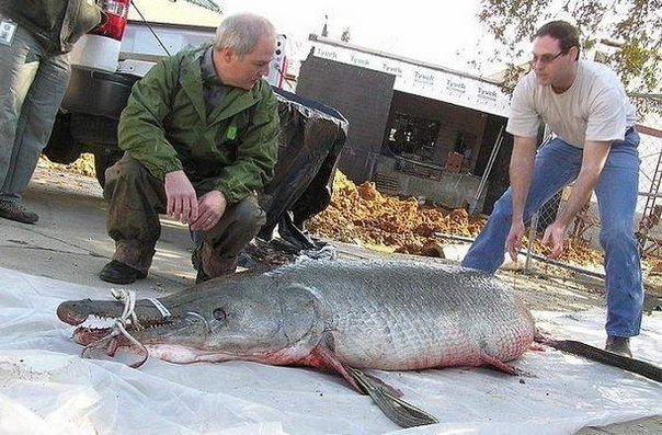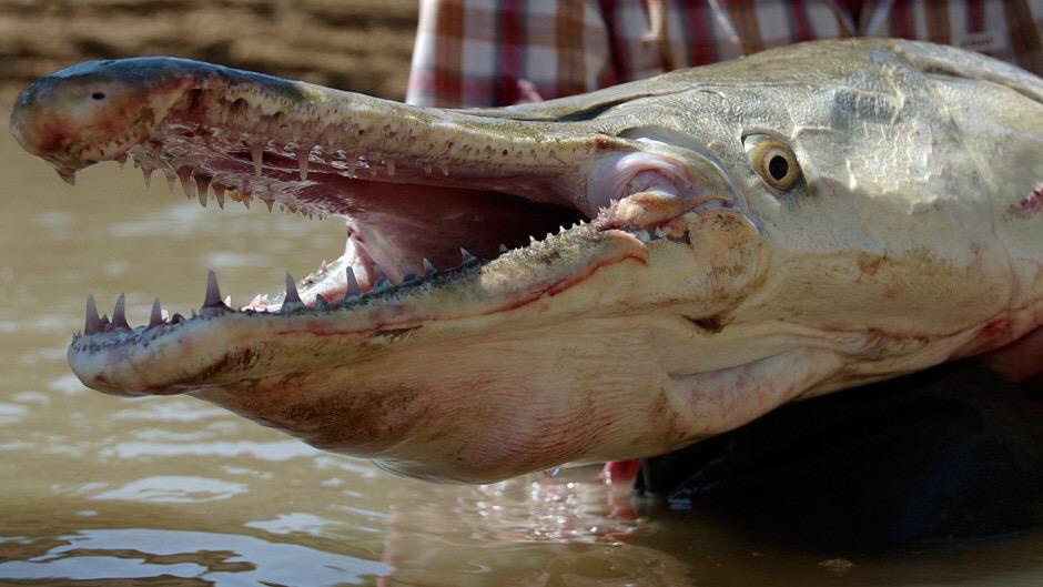 Веслонос — это осетровая рыба родом из реки Миссисипи. В Украину его завезли в конце прошлого века и у нас в стране естественной средой обитания для него стало Азовское море. Нерестится веслонос в Днепре.
