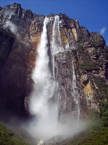 Водопад Анхель (известный как Керепакупай-меру на языке коренных народов пемон) был признан самым высоким водопадом в мире, его высота составляет почти километр (общий перепад около 979 м при свободном падении 807 м).