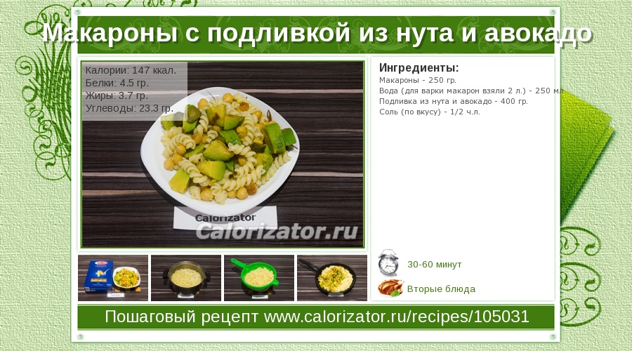 К тому же, если говорить о калорийности, возьмите во внимание ингредиенты, которые используются для приготовления макарон. Для того, чтобы точно определить энергетическую ценность, все продукты считаются отдельно.
