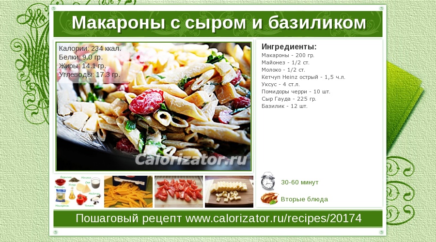 Если вы обедаете в ресторане, вполне вероятно, что в вашей тарелке окажется даже больше, чем чашка макарон. Если вы едите дома, отмеряйте каждую порцию макарон, добавляя их в миску, чтобы убедиться, что вы остаетесь там, где вы хотите быть с точки зрения калорийности.Конечно, маловероятно, что вы едите макароны в чистом виде, поэтому вам также нужно учитывать соус или начинки, которые вы добавляете, когда пытаетесь вычислить свои калории. Полстакана обычного соуса маринара добавит всего 66 калорий, в то время как такое же количество более сливочного и густого соуса Альфредо дает 220 калорий.