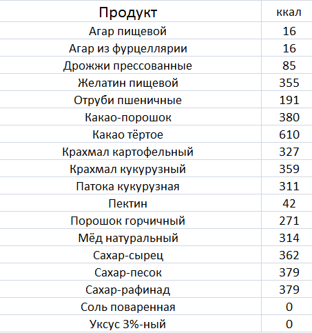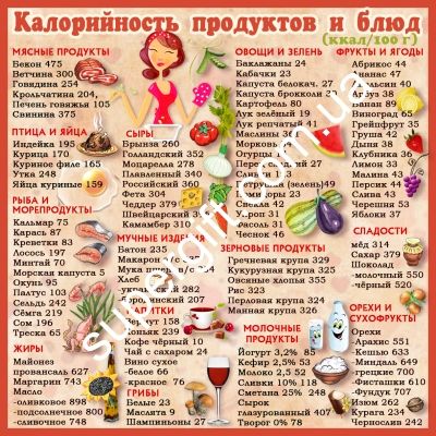 Какая отличная и подробная табличка! Хочу распечатать ее и повесить на кухне, потому что иногда хочется что-то запретное скушать, а так хоть буду знать, сколько в чем калорий и задумаюсь дважды, а есть ли.