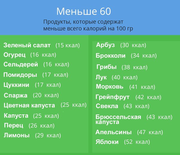 Мы отсортировали фотографии от менее калорийных продуктов к более калорийным. Пожалуйста, имейте в виду, что данный проект обращает внимание только на количество калорий (которых, кстати, взрослому человеку требуется потреблять в среднем 2000–2500 ежедневно!) и не затрагивает другие не менее важные показатели, составляющие питательную ценность продукта.