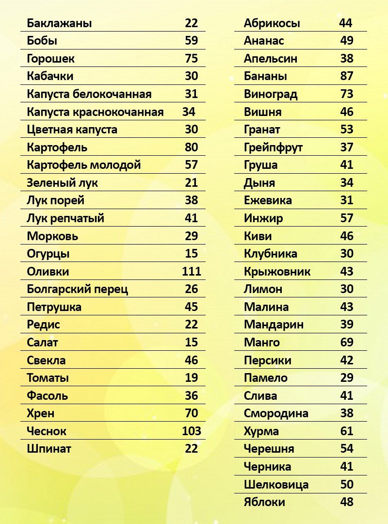 Грамотная таблица, теперь рацион контролировать стало проще. Свои ошибки сразу нашла, учту на будущее. И не стану отказываться от любимых бананов, один в сутки себе позволить можно!