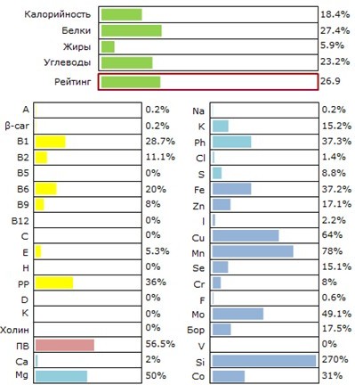 В состав ее входят углеводы, растительный белок и очень много микро и макроэлементов. Словом, в этой крупе есть практически все крайне нужные для организма вещества.