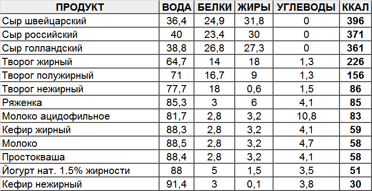 В 100 граммах