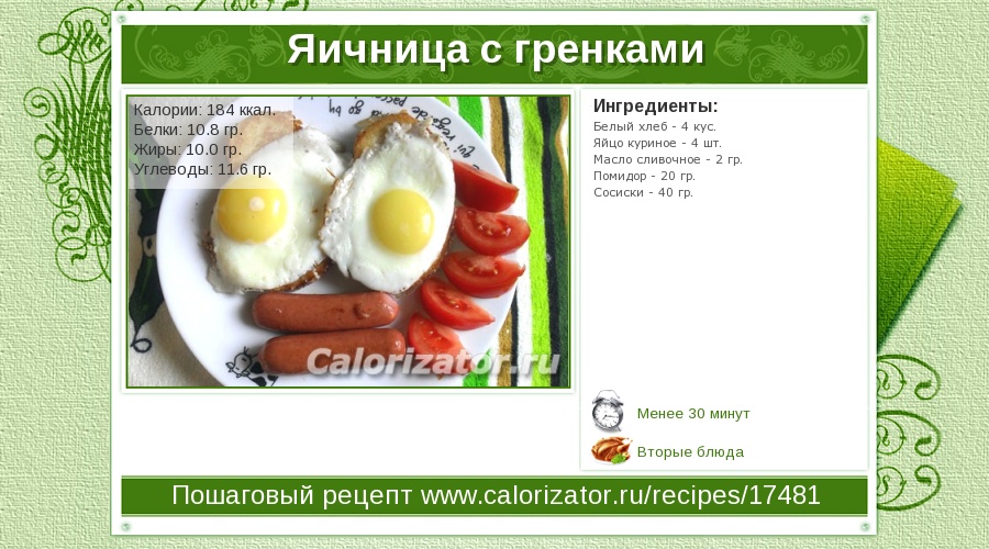 Порция из двух больших яичниц-болтуньи содержит около 180 калорий…