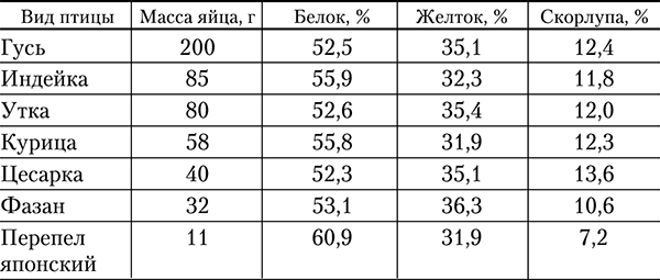 Объемное соотношение куриных яиц к весу.