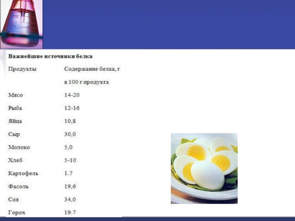 В белке содержатся следующие вещества: