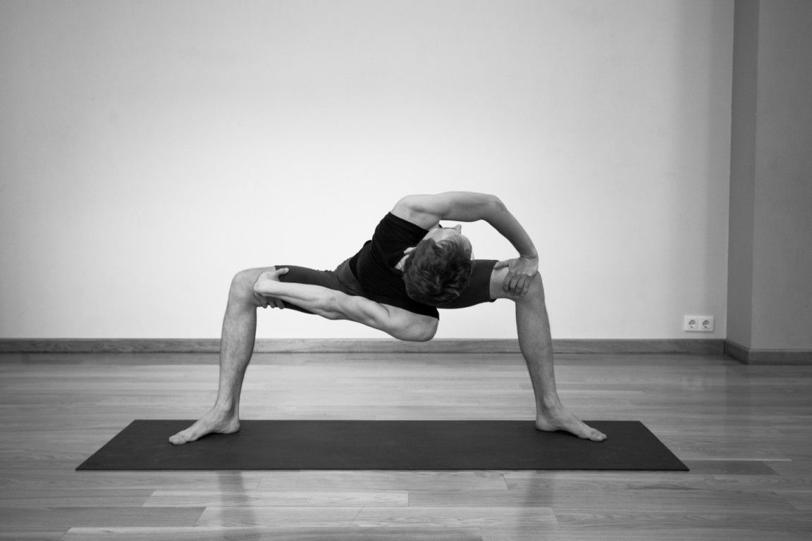 Выполнение сложных асан на руках требует достаточную гибкость.