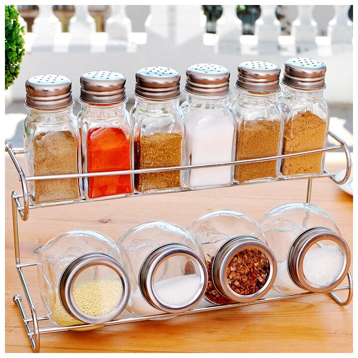 Красивые стеклянные колбочки, настольные «карусели» и прочие декоративные наборы для хранения специй – вариант эффектный, но непрактичный. Вы ведь помните, что приправы любят темноту? А долгое хранение в прозрачной таре на свету может привести к потере цвета, аромата и вкуса любимых специй. Такие наборы лучше использовать исключительно в декоративных целях.