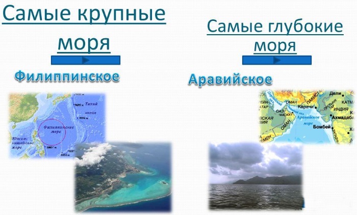 Бывают межконтинентальные и межостровные, окраинные и внутренние моря,