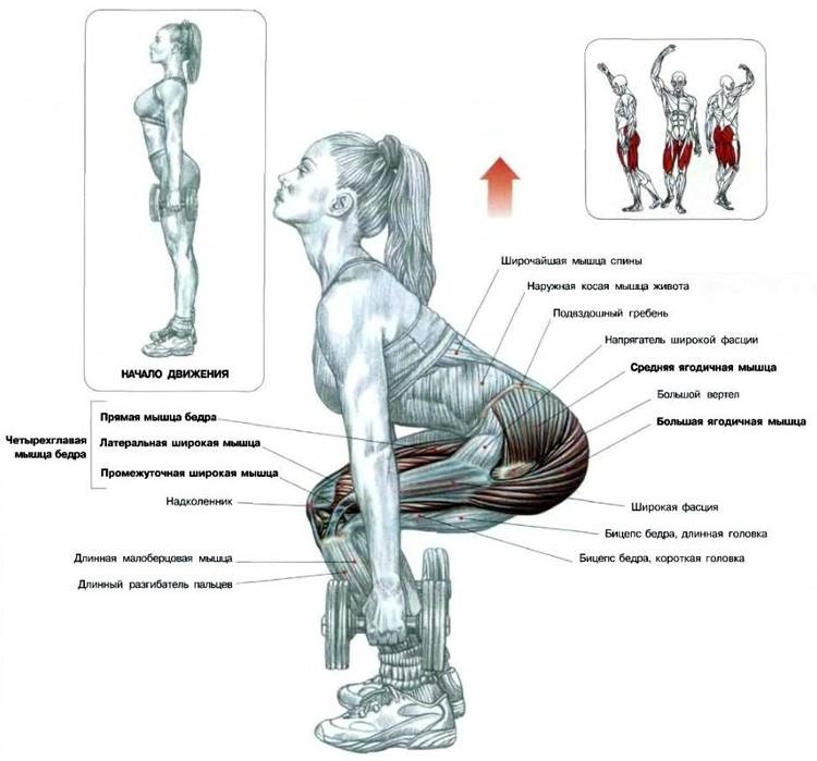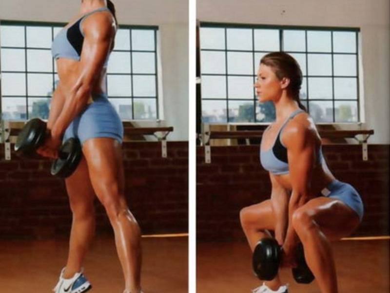 Приседания с гантелями для девушек для ягодиц (техника, виды)