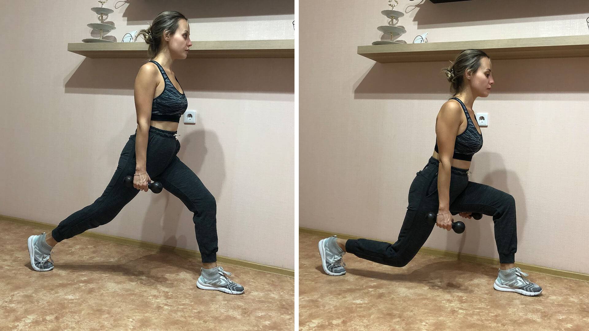 Помимо представленных выше приседаний для девушек, нагрузку на мышцы ног и ягодиц получают за счет выполнения еще одного популярного упражнения: выпадов. Выпады можно делать как с гантелями, так и без них, они полезны для укрепления мышц.