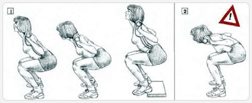 - Когда вы приседаете, не опускайте ягодицы ниже уровня ваших колен.
