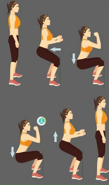 1. Приседания с собственным весомЭто обычное приседание с нулевым оборудованием. Здесь нет гантелей, штанг или гирь. Просто примите базовую форму приседа, ноги на ширине плеч, ступни слегка развернуты, присядьте так, чтобы колени достигли угла 90 градусов, а затем попытайтесь удерживать вес через пятки , когда вы отталкиваетесь назад, чтобы начать.Помните, что нельзя наклоняться вперед и сохранять спину ровной на протяжении всего упражнения. Колени никогда не должны касаться пальцев ног .