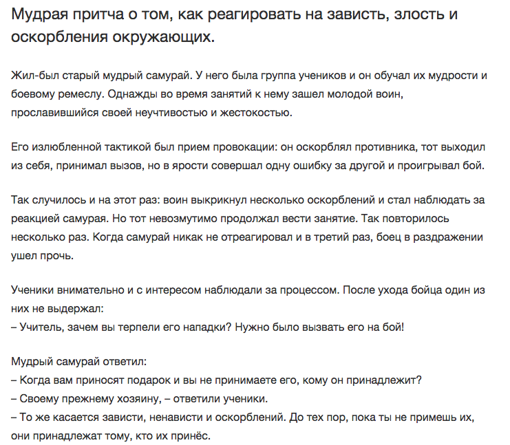 Мудрый человек в ответ лишь улыбнулся. Наблюдавший эту сцену хорошо одетый юноша спросил: